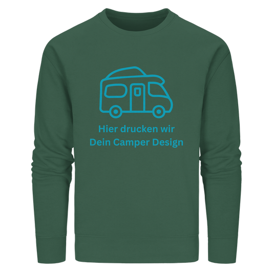 Organic Sweatshirt "Bottle Green" - bedruckt mit Deiner Camper Illustration