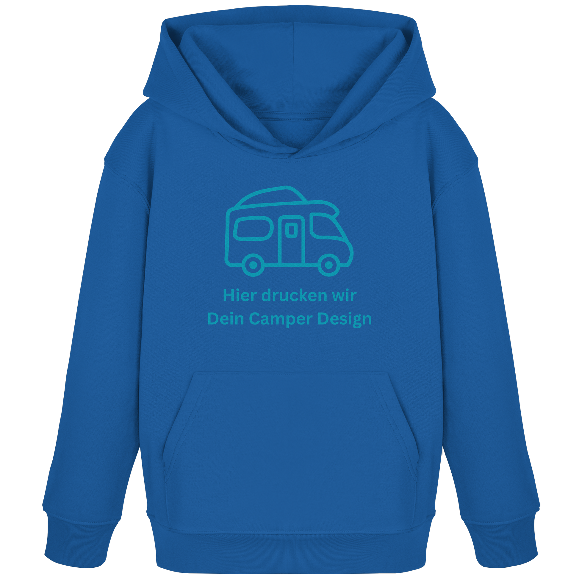 Kids Organic Hoodie "Royal Blue" - bedruckt mit Deiner Camper Illustration