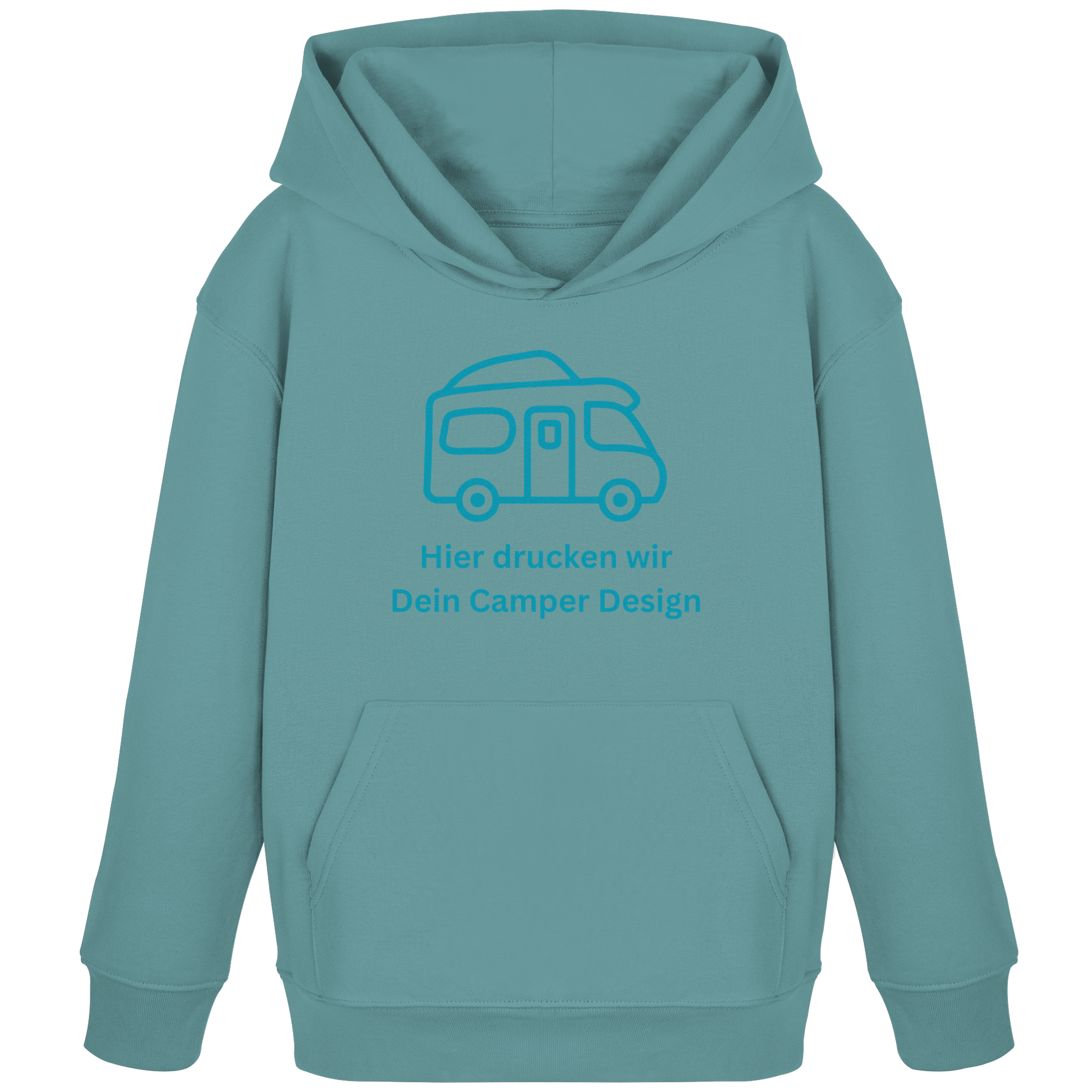 Kids Organic Hoodie "Teal Monstera" - bedruckt mit Deiner Camper Illustration