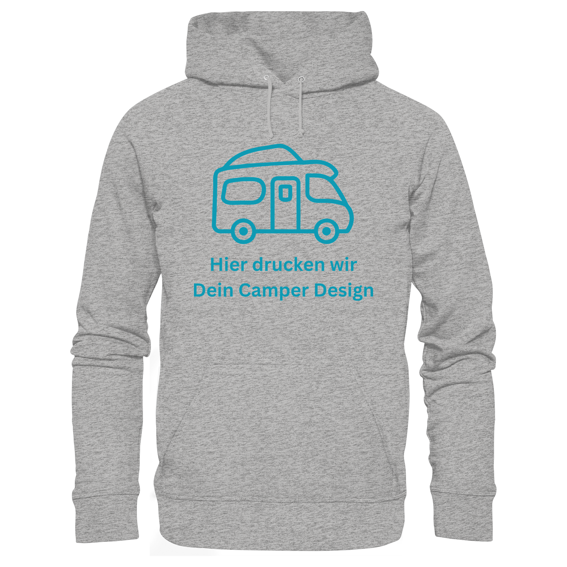 Organic Hoodie "Heather Grey" - bedruckt mit Deiner Camper Illustration