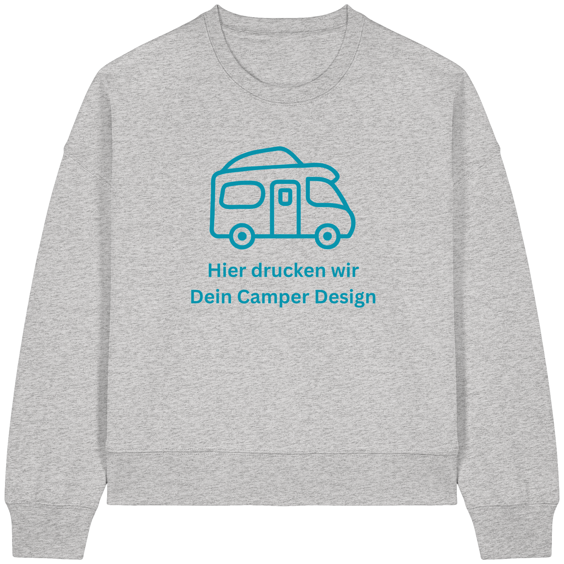 Womens Organic Boxcut Sweatshirt "Cool Heather Grey" - bedruckt mit Deiner Camper Illustration